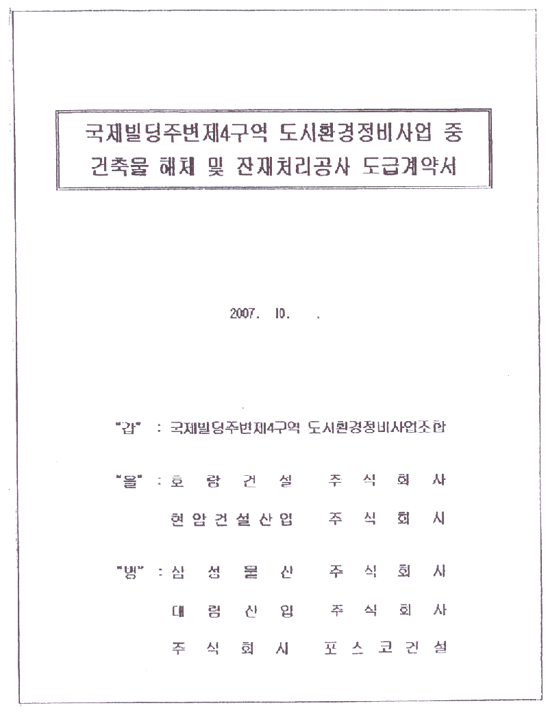‘국제빌딩주변 제4구역 도시환경정비사업 중 건축물 해체 및 잔재처리공사 도급계약서’가 공개됐다. 서울신문은 2월7일자 사회면에 [무리한 철거시한 ‘용산 참사’ 화근]이라는 제하의 기사를 싣고 계약서를 내용을 공개하였다.