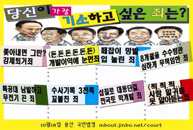 "당신이 가장 기소하고 싶은 죄는?"이라는 선전판넬을 준비해서 나갔어요.