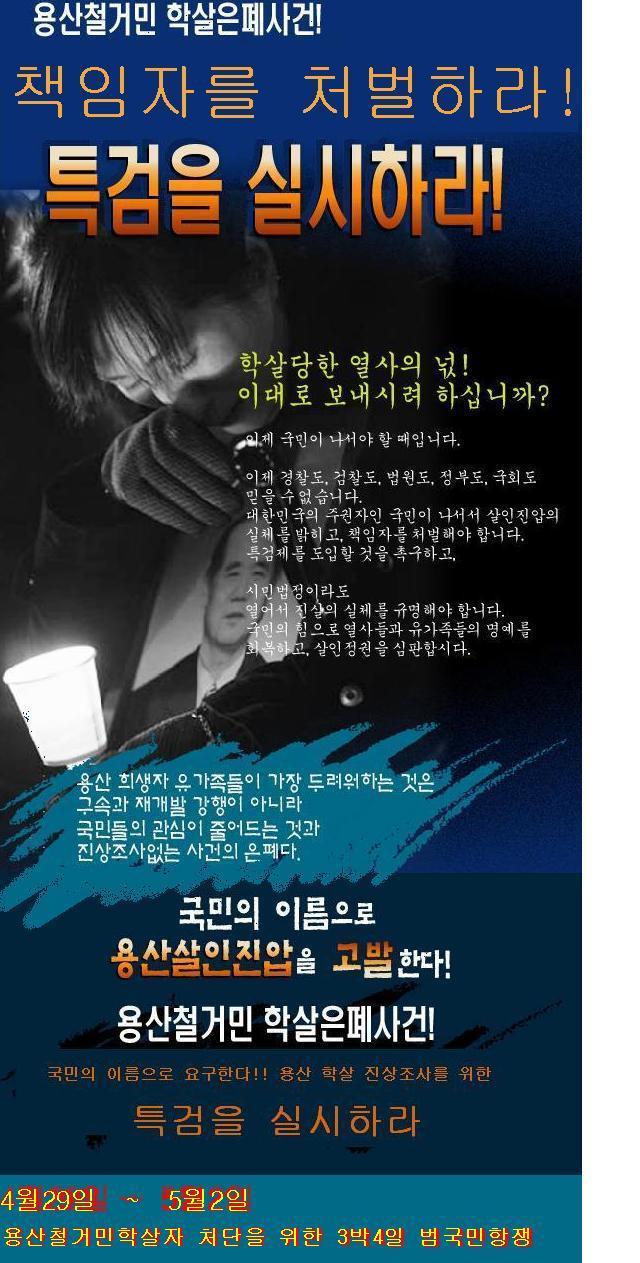 용산 학살만행 수괴 이명박 타도를 위한 3박4일 범국민항쟁 웹자보.