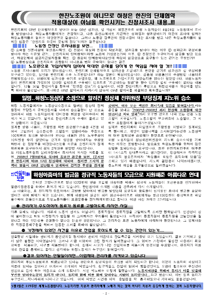 한진지회가 일을 할때는 하청노동자라고 해놓고, 실제로 폐업되면 하청이 아닌것처럼 한진원청의 대해서는 전혀 책임을 묻지 않았던 도장폐업합의입니다.
