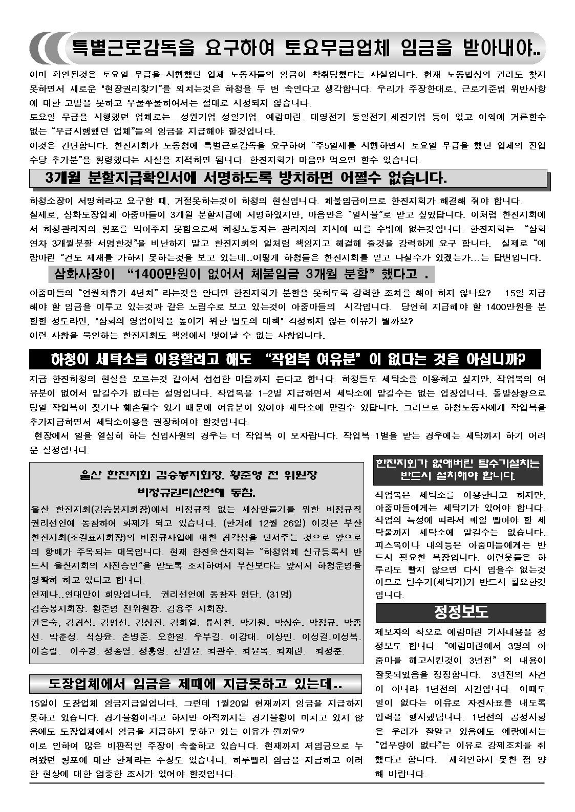 - 한진비정규노조추진위