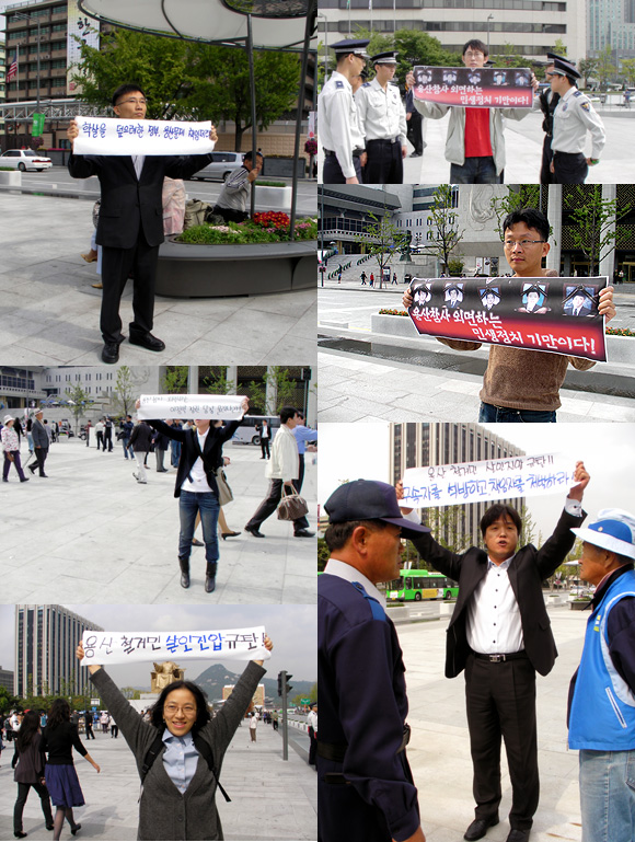 용산학살진상규명 광화문 1인 시위 중 - 시당위원장, 사무처장 밎 참가자 전원 연행!!