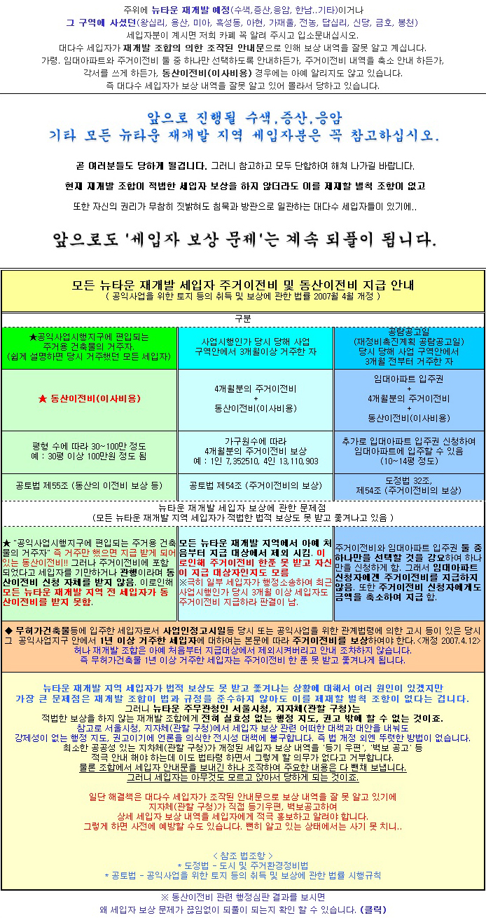 ★ 전국 뉴타운 재개발 세입자에게 고(告)합니다.