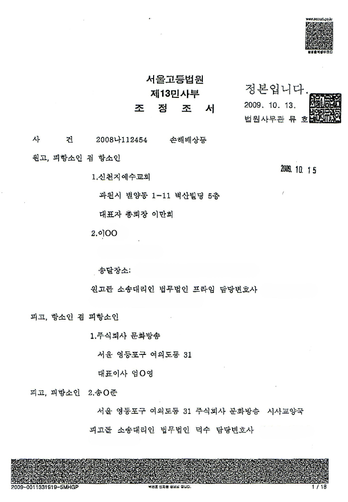 1. 주식회사 문화방송은 2007.5.8. 및 2007.12.25. 방송한 'PD수첩'프로그램에서, 대부분의 신천지예수교회 청년들은 가출은 물론 이혼, 심지어는 자녀가 부모를 고소하는 경우도 적지 않다고 방송한 바 있습니다.