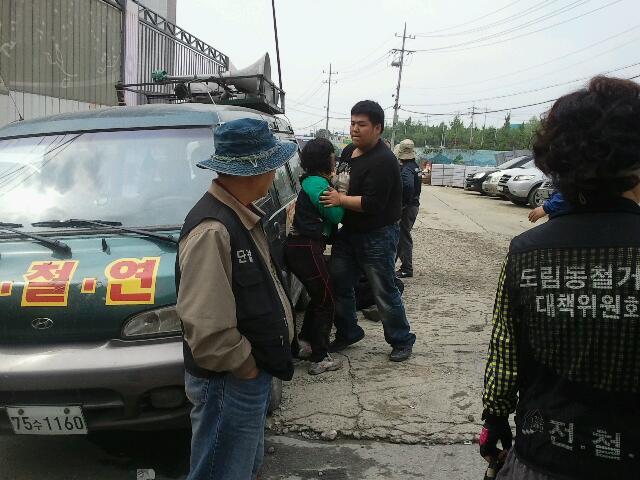 아침에는 용역깡패 한명이 술을 먹고 와서는 광명철대위 부녀자 2명을 무차별적으로 폭행을 가했습니다