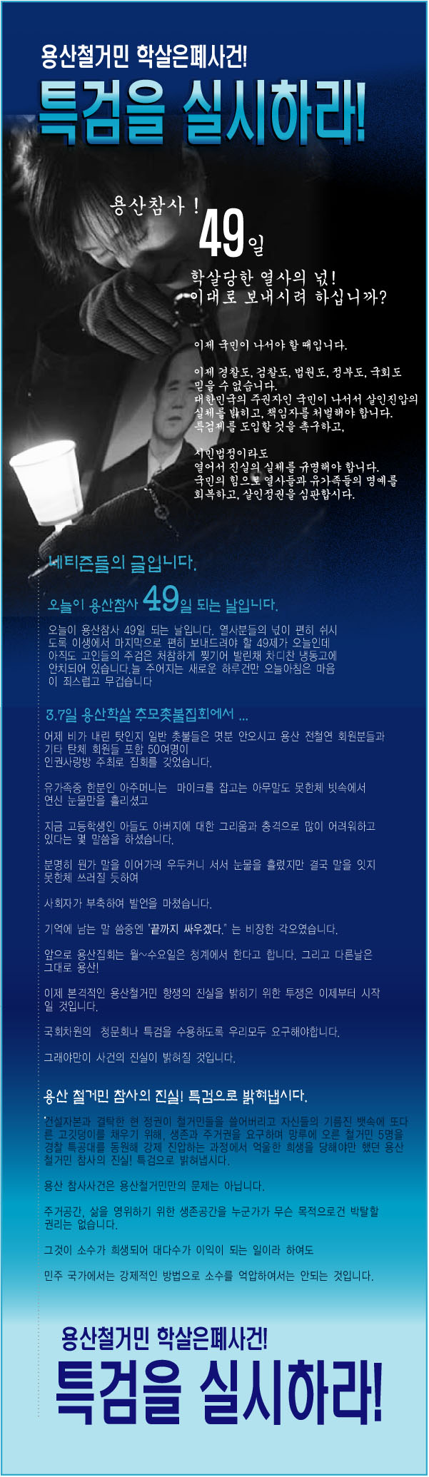 3월 9일 오늘은 용산참사 49제입니다.