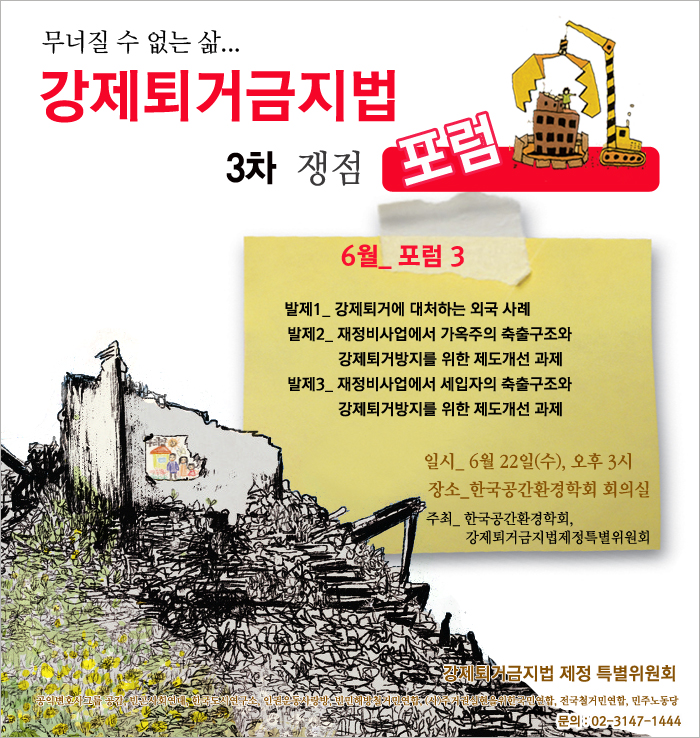- 주최 : 공간환경학회, 강제퇴거금지법 제정 특별위원회