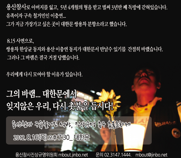 용산참사진상규명위원회 mbout.jinbo.net        문의 02.3147.1444.    mbout@jinbo.net