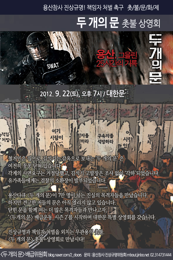 진상규명과 책임자 처벌을 외치는 무관용의 촛불. <두 개의 문> 촛불+상영회로 만납시다