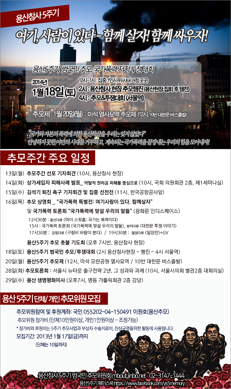 용산참사 5주기 범국민 추모위원회 mbout.jinbo.net 02-3147-1444
