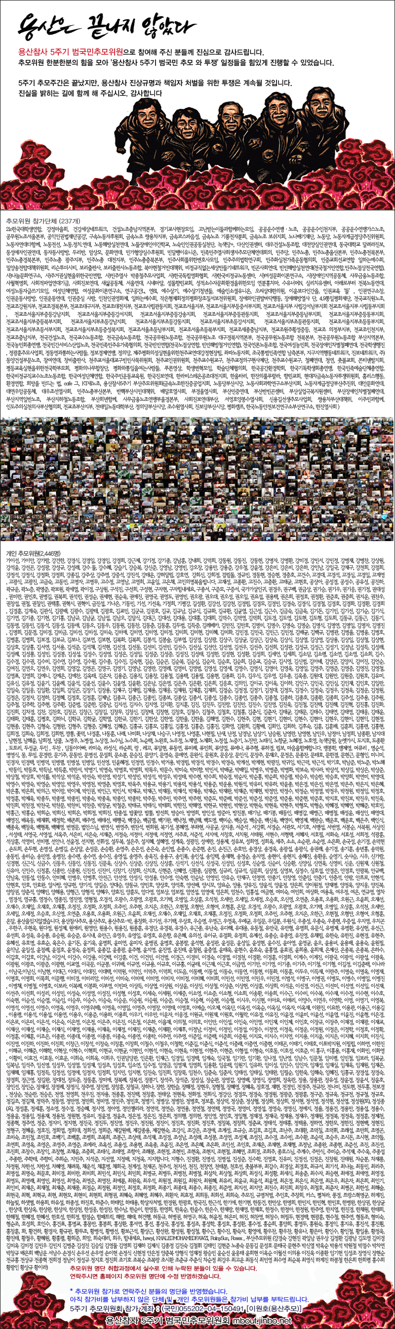 * 추모위원 참가로 연락주신 분들의 명단을 반영했습니다. 아직 참가비를 납부하지 않은 단체 및 개인 추모위원들은 참가비 납부를 부탁드립니다.