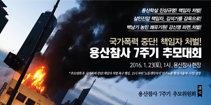 용산참사 7주기 추모대회(23일,토,1시/ 용산참사현장) (웹자보)