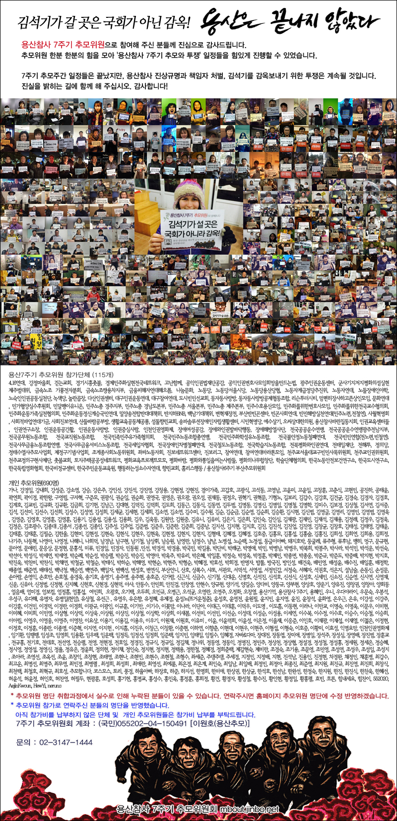 용산참사 7주기 추모위원으로 참여해 주신 분들께 진심으로 감사드립니다.
