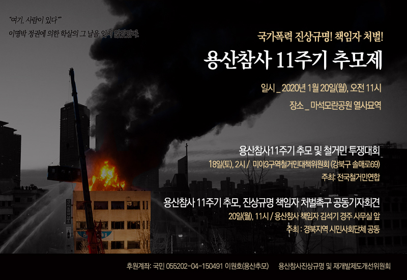 오는 2020년 1월 20일(월)은 용산참사 11주기가 되는 날입니다.